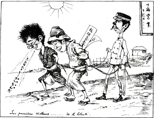 第44図 秘密出版事件に関する諷刺画(ビゴー画、1887年)